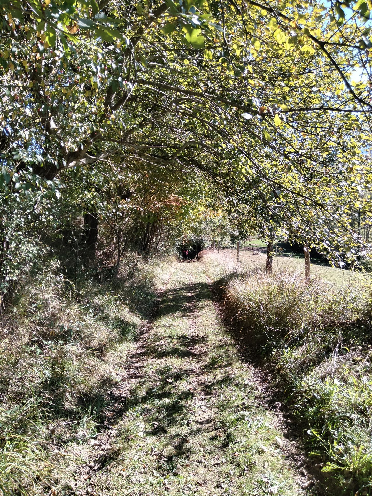 11, 480 km – Traversez la D 5b et dirigez-vous en face vers la petite route. Après 300m environ, tournez à gauche sur une large piste.